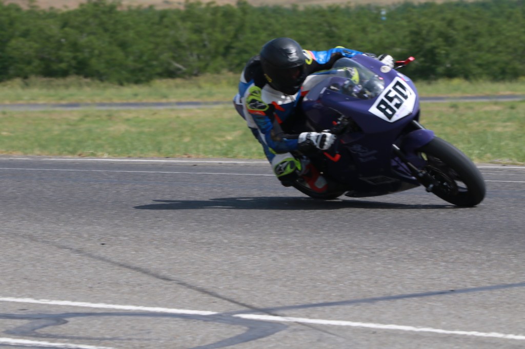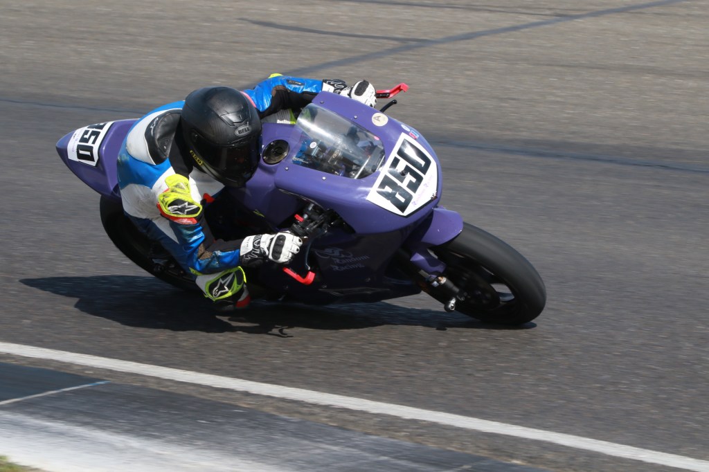 My first race of the weekend was either the race of my life or a big misunderstanding. I spent the race fighting it out for podium spots with Jason Diaz on an Aprilia RS660 and Alex George I believe also on the Aprilia. Alex was leading most of the race, but made a mistake on one of the last laps which allowed Jason and me to come through. It then seemed like Jason had me covered by about 1.5 seconds for the win on the last(?) lap when suddenly what I completely expected to be the checkered flag was the white flag flying for a second time! I couldn’t believe what I was seeing, but the only choice was to keep racing. So I put my head down and stuck on Jason’s rear the best I could. Jason I think missed a gear or something between turns 9 and 10 and I went by him on the last lap part deux! I stuck the landing around turns 14 and 15 and cruised down the straight, confident I’d just won my first expert class race. I pumped my left arm in the air 100 feet before the finish line and then out of the corner of my eye I saw Jason slip past me a millisecond before we crossed the line. It was too close to know for sure, but my gut told me he beat me. Damn that RS660 power! Also, had the fist pump slowed me down and cost me the win?!
