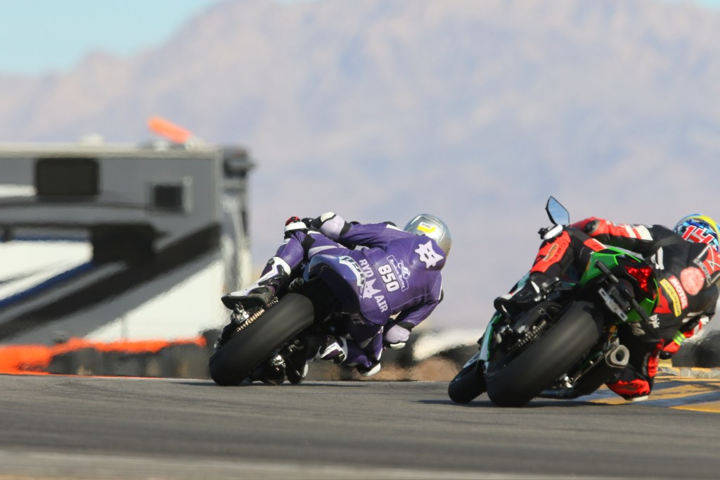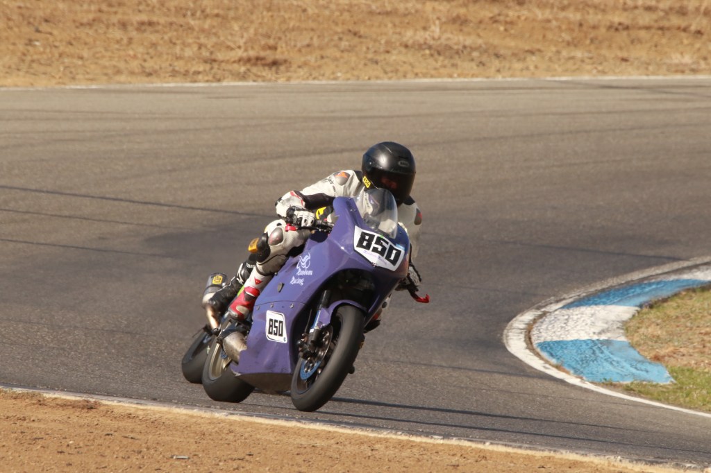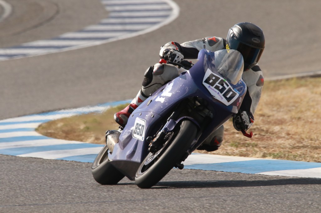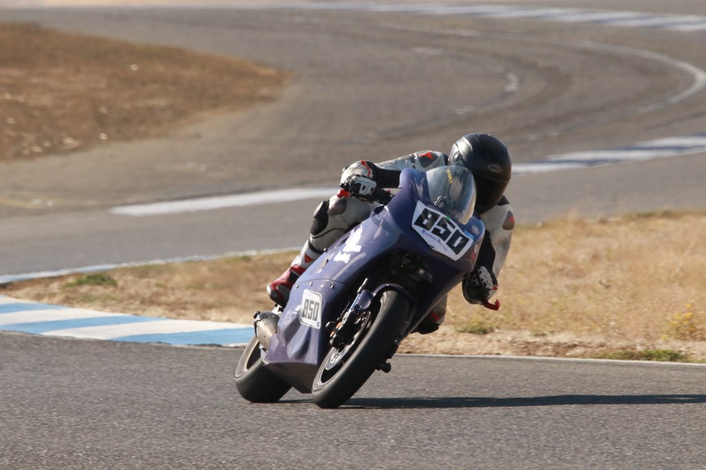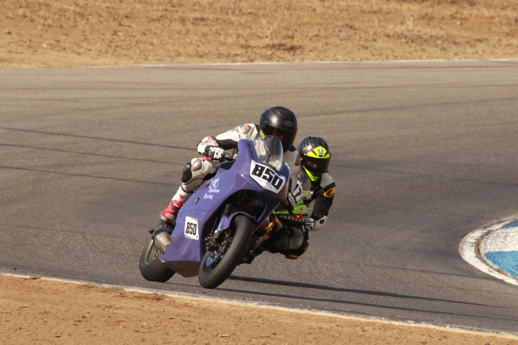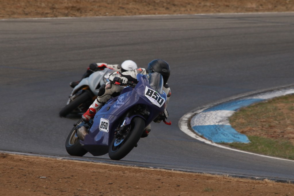 I got another taste of a front row start for the Lightweight Superbike race. Although it looked like I was left in a lonely third place early on, Kenyon Kluge’s #96 Zero seemed to not be able to deliver full power for the entirety of the race and I caught him at turn 1 of the last lap (pictured at top) for second place!