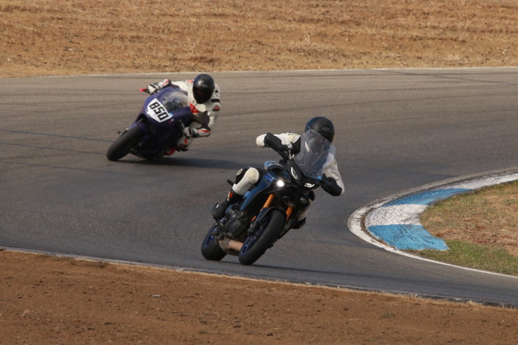 On Friday with Carters it felt like that plan was playing out well. I felt comfortable and quick right out of the gate. On AFM Fridays Carters runs B+, A, and A+ groups, with the idea being that normal A group track day riders can still ride A group here, but the lightning quick racers can occupy A+. I’ve always felt a step behind the A+ group, especially with my 75 horsepower FZ-07, so I’ve been content to stick with the standard A group. After my first session this time, though, I felt like I’d finally reached the point where the standard A group was holding me back and I was ready to graduate to A+. Another rung on the never-ending ladder.