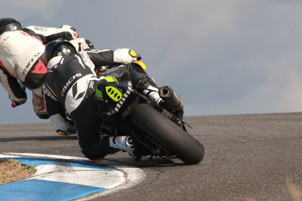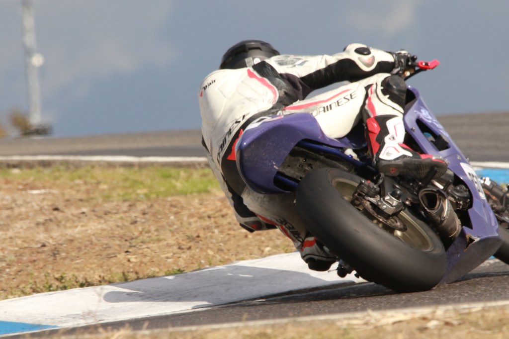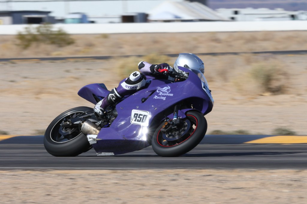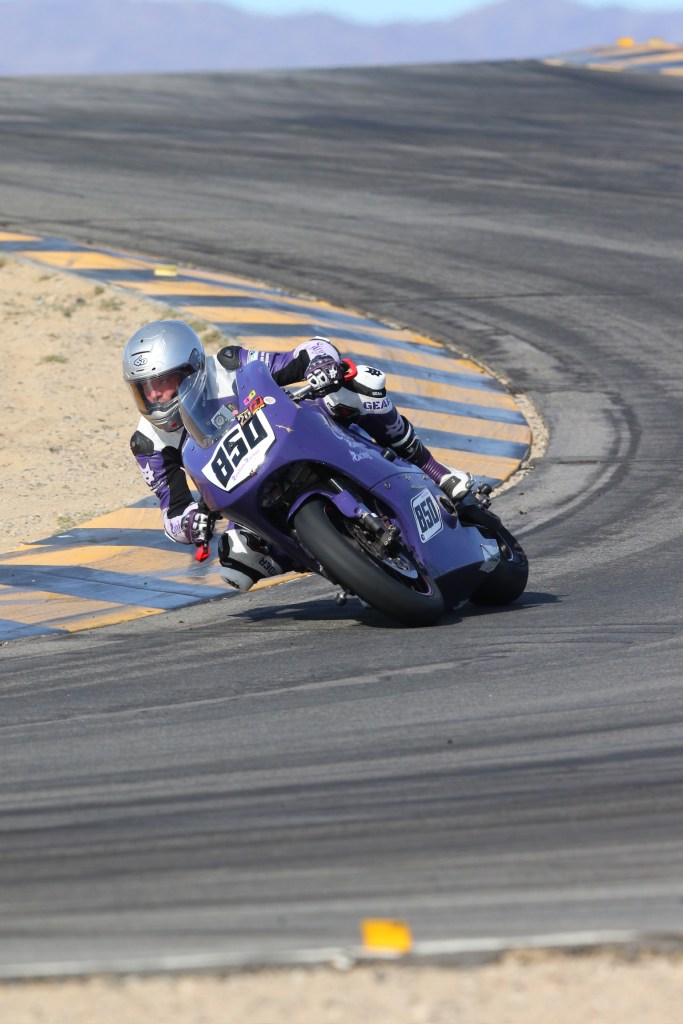 Last weekend an opportunity popped up in my schedule to get out of the house for a bit and I got a timely email from Race Pace Trackdays early in the week advertising open spots for their no-sessions track time at Chuckwalla for Saturday and Sunday. Normally Race Pace caters specifically to veterans of the Chuckwalla track, but I reached out and they were very accommodating to pre-verify me as an AFM racer and welcome me to learn this fun little California desert track. I really enjoyed getting to know the track – it has quite a number of interesting elements. I’ve never spent so much time on the right edge of my tire, and with my peg mounted a little low I ended up burning clean through the toe slider on my new boots. Thanks to Tony at Ryder Gear for promptly mailing me a couple sets of replacement sliders. I might have to just get another pair of boots, and to be honest I’m already thinking about just getting a second suit because I like it so much…
